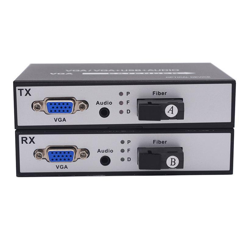 This VGA over fiber system is used to send 1080p VGA a/v signals to remote audio/video transmission device through single Fiber Optic cable with SC fiber connector.