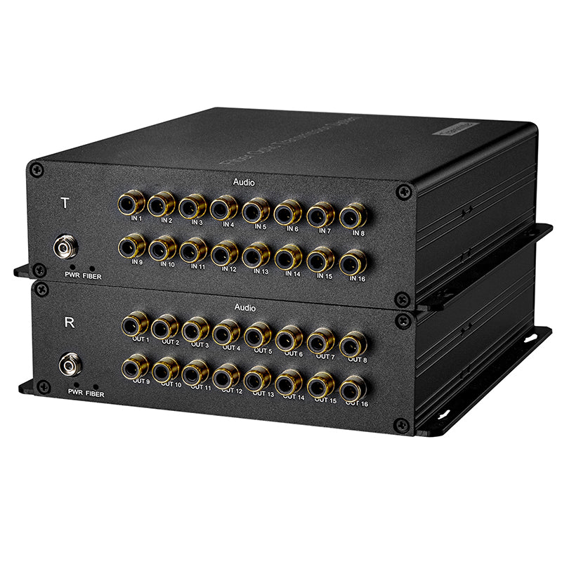 Это устройство может расширить 16 каналов несбалансированного аудио RCA по оптоволоконному кабелю до дальнего конца. Оно позволяет синхронную передачу аудиоустройства 16 RCA, аудиосигнал 16 RCA передается от T (TX) в направлении R (RX).