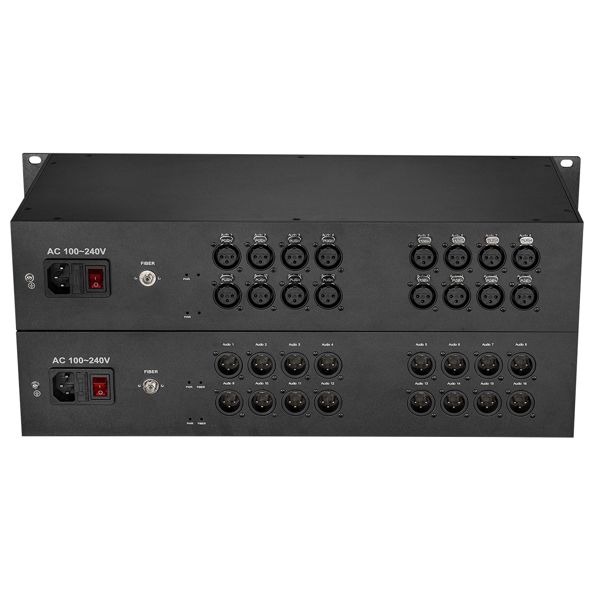 【Функция】Этот удлинитель XLR Audio over fiber может удлинять 16 каналов сбалансированного XLR Broadcast уровня высококачественного звука по оптоволоконному кабелю до дальнего конца. Он позволяет синхронную передачу аудиоустройств 16 XLR, отладка не требуется. Аудиосигнал 16 XLR передается от T (TX) в направлении R (RX)