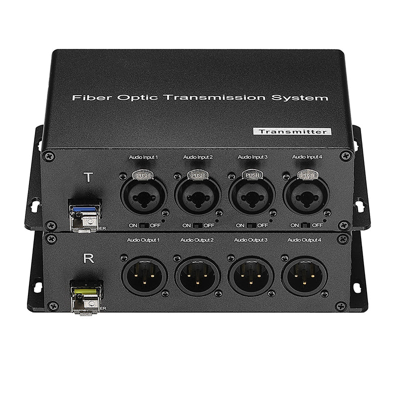 【 XLR Audio over Fiber 】 Это устройство может расширить 4 канала 48В фантом XLR-балансный Аудио по оптоволоконному кабелю на дальний конец . 4 XLR Аудиосигнал — это прямой сигнал, который передается от T (TX) в направлении R (RX) .